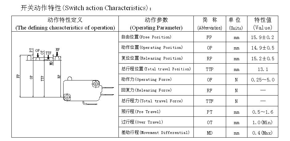 Parameter mikro stikala (specifikacija)