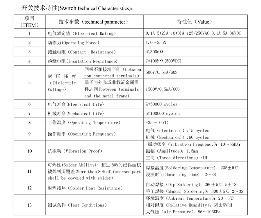 | 1 | Električna ocena | 0.1A 5(2)A 10(3)A 125/250VAC 0.1A 5A 36VDC | |